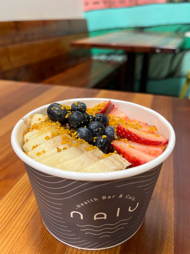 バナナやパイナップルなど季節のフルーツ、冷凍ブルーベリーなどでトッピングを。