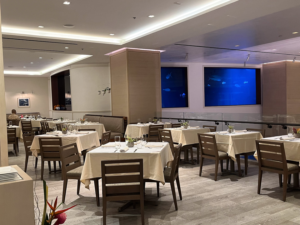 平日は朝食ビュッフェ(平日7時~11時)、週末はブランチビュッフェ(9時~14時)がイチ押しで、50種類以上。、ポケやシュリンプカクテル、サーモンなどの新鮮な魚介、プライムリブ、レチョン、オーダーメイドのオムレツ、パスタ、サラダ、フルーツ、ペストリー、デザートまでが並ぶ。エグゼクティブシェフはハワイの老舗ステーキの名店ハイズステーキハウス出身だけあって肉料理は素晴らしいのでぜひとも味わおう。なお、ディナービュッフェは水~日曜の17時~20時まで営業している。