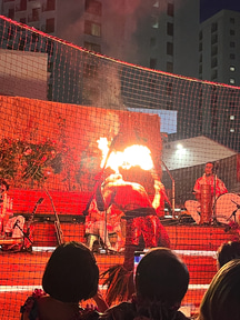 ショーでは、フラ・カヒコ (古代フラ)やフラ・アウアナ(現代フラ)のほか、ポリネシアの各島の踊りや、世界チャンピオンのファイヤーダンスまで全3時間。5歳の男の子による島内最年少のファイヤーダンサーのダンスも素晴らしかった。