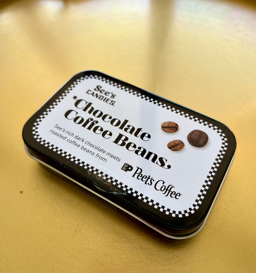 アメリカのコーヒーブランド「ピーツコーヒー」の豆に、シーズのシグネチャーであるダークチョコレートをコーティングしているのだが、上質なチョコレートとほろ苦いコーヒー豆はベストマッチ。こうしてこの説明を書いている間にも一粒、そしてまた一粒といけてしまう。