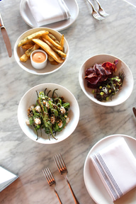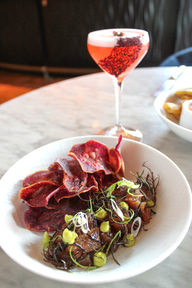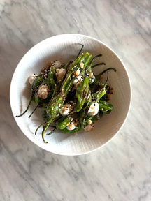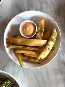 そして、シェフお手製のププ(つまみ)は6ドルから。品数は少ないが、例えばフレンチフライのスパイシーマヨソース添え(6ドル)は、「あ、フライドポテトね」と侮ることなかれ。太めにカットしたじゃがいもを絶妙に揚げた一品。焼きシシトウ(10ドル)もマコトシェフの腕にかかると、ギリシャヨーグルトのアイオリソースとゴマをあえて、ふわっとニンニクが香る一品となる。