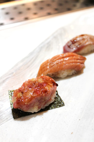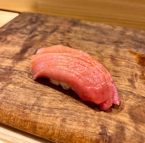 「ハワイという質がよい環境のなかで育ったメバチマグロは、赤身も中トロも絶品。養殖や冷凍の技術が進んだ今、天然ならではのこの味を知らない方も多いので、ぜひ本物の味を知ってほしい」と言い、毎朝の仕入れ、仕込みをとことん丁寧にする。