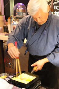 初めてでも常連のような気持ちにさせてくれる親しみやすさのある大将が、目の前で丁寧に卵焼きを作る様子は見事なパフォーマンス。
