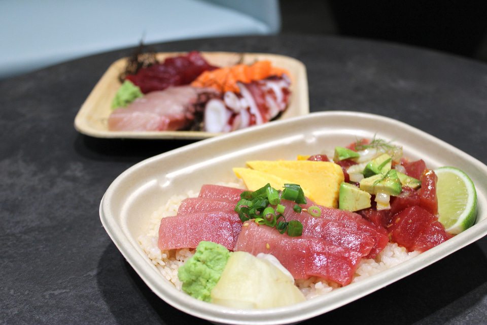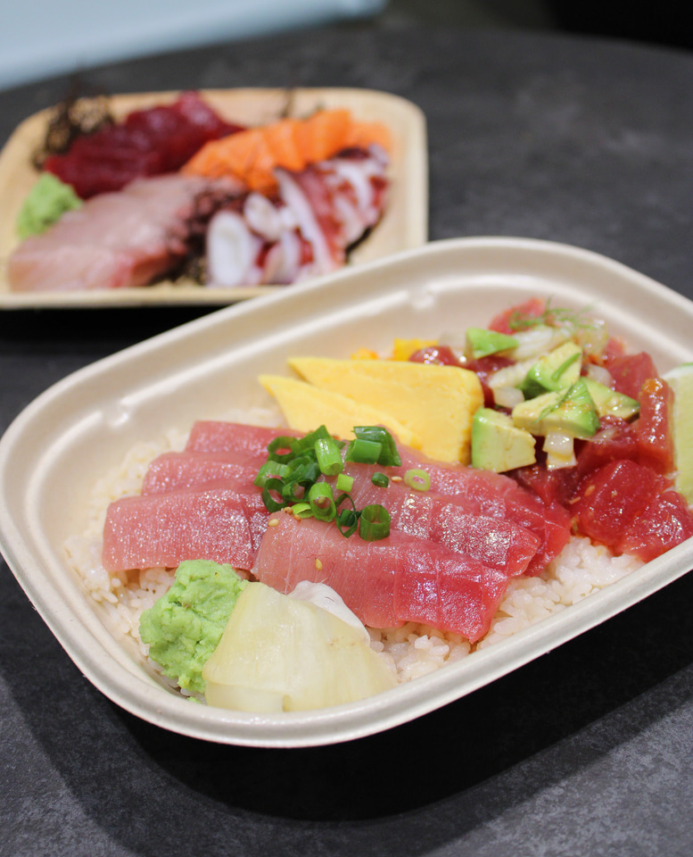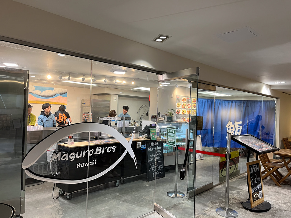 最後は、寿司店ではないが予約不要で格別の天然マグロを食べられる店。築地で働いていた日本人の兄弟が営んでいて、ワイキキ店は何度か移転を繰り返し、2023年秋に最もアクセスのいいワイキキショッピングプラザの地下1階にオープンした。店のまわりにはイートインスペースも備えている。