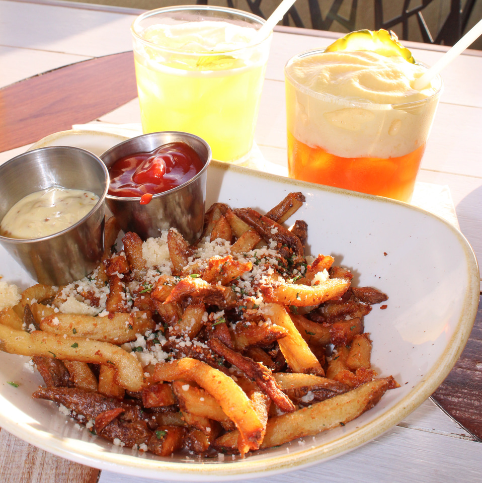 訪れるたびにオーダーするのが、ガーリックトリュフオイルフライ(13ドル→6.50ドル)。揚げたてを自家製ケチャップと全粒粉マスタードアイオリソースにディップしてつまむと永遠に手が止まらなくなる。