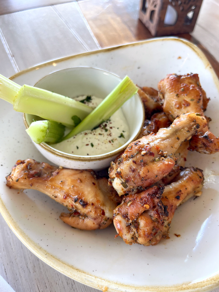 地鶏によるローステッドチキンウィングはメリマンシェフが得意とするハーブ使いが素晴らしく、ローカルローズマリーとガーリックが香っていた(22ドル→11ドル)。ヨーグルトフェタとセロリも添えられていて、結構なボリューム。ついつい食べ過ぎると次の一品にいけなくなるのでご注意を。
