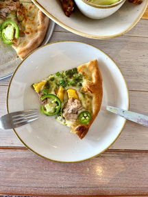 このロケーションで、店内の窯で焼き上げるピザが14ドル(定価は21~23ドル)というのは破格なので、ピザもオーダー必須リストに入っている。今回はハワイらしくカルーアポーク&パイナップルを頼んだ。カルーアポークとマカデミアナッツペスト、生のパイナップルがこんがり焼かれていて、大満足だった。ハワイならではの味を満喫したいならオススメしたい。