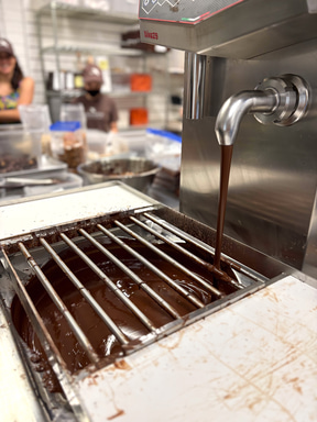 さらにもう一歩、ローカルに踏み込んだ体験をしたい場合は、工房見学&テイスティングガイドツアーへ。甘い香りが漂うキッチンに入って出来立てのとろとろのチョコレートをひと舐め。その味に皆が目を輝かせていた。