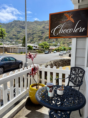 ワイキキから15分ほどクルマを走らせると、緑豊かな山に囲まれた住宅街マノアがある。澄んだ空気、山にかかる虹、のんびりした時間が流れるこの街に、こぢんまりと店を構えているショコレア。「Choco le'a」の発音は「ショコレア」だが、「チョコレア」と呼ばれることも多く、オーナーのエリンさんは「どっちでもいいわ!」と笑っていた。