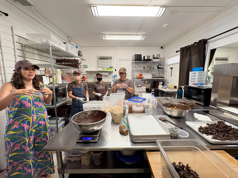 ショップに併設する工房で、地元のカカオとヨーロッパのカカオをブレンドし、ハワイの食材を使って、ダークチョコレートを作り上げる。ほかでは再現できないオリジナルレシピがあるのだという。