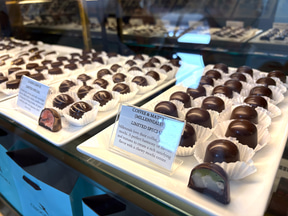 ショーケースに宝石のように並ぶのは約20種類のトリュフをはじめとしたチョコレートの数々。一番人気は、ハワイ・ベルギー・スイスのチョコレートが融合したトリプルチョコレート。ハワイらしさを堪能するなら、甘酸っぱくトロピカルなリリコイやキャラメルwithハワイアンシーソルト、コナコーヒー、ピーナツバター&グアバジェリー、イチゴとパイナップルによるラバフロー、そしてかき氷の味を楽しめるレインボーシェイブアイスを。どれもピュアな味わいで、上質で香り高い甘みがスッと舌の上で溶けていく。