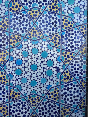 小さな噴水を囲む中庭も見事な空間。壁には13世紀や17世紀のタイル、イランに特注したモザイクタイルがはめ込まれている。イランのシャーモスクの門のデザインのレプリカは圧巻だった。