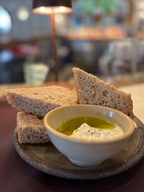 しっとり焼き上げた全粒粉フォカッチャを香り高いオリーブオイルと自家製リコッタチーズに潜らせるというシンプルな一皿も豊かな風味だったし、ナスとポテトのギリシャ風グラタン、ムサカはとろとろのナスの甘みが広がって、ゆっくりワインと一緒に味わいたくなった。