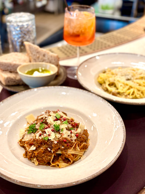 気軽に楽しむなら、14時から18時のハッピーアワーがオススメ。ワインやサングリアは8ドルで、アペタイザーとともにカジュアルな時間を過ごせる。ランチタイムはパスタが10ドル台から。さらに、在住者はランチメニューが20%引きになるが、大々的に公言すると混雑してしまうのでこっそり伝えたいのが店の意向のようだ……。