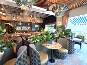 ダイニング、ラウンジ、バーエリアは、歴史あるアールデコの要素とハワイのトロピカルで開放的なデザインが融合し、ゆったりしたリゾート気分に浸れる。