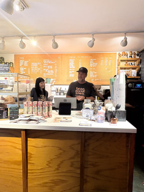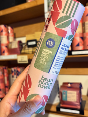 そのまま坂を下ると、コーヒー専門店「ビーンアバウトタウン」が見えてくる。ワイキキのDFSにも店があるが、ここカイムキが本店。来年には拡張予定だという。ルーツをたどると、実は2005年ロンドン発祥の店で、7店舗まで展開したあと、オーナーのオリヴィエさんがコーヒーへの情熱を携えて奥さんの地元ハワイへ移住。2018年にカイムキで店を開いた。「豆からカップまで」を掲げ、コーヒー生豆を調達して焙煎する新鮮なコーヒーとヨーロッパの感性を添えたフードを提供する。筒状の紙ボックス入りコーヒー豆、ロゴ入りのTシャツ、エコバッグなどはお土産にも喜ばれる定番アイテム。