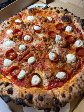以前取材したときに聞いた、小麦粉選びから生地作り、焼き加減までのこだわりは今も健在。ここのピザはハワイでも上位に入ると思う。つい先日もオーダーして持ち帰ったばかりだ。