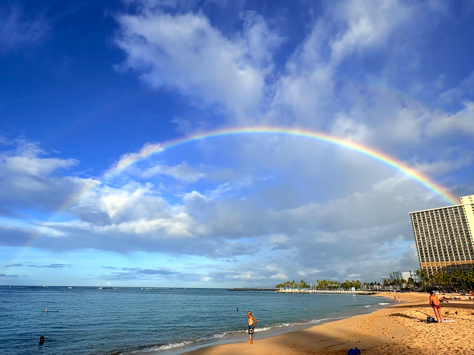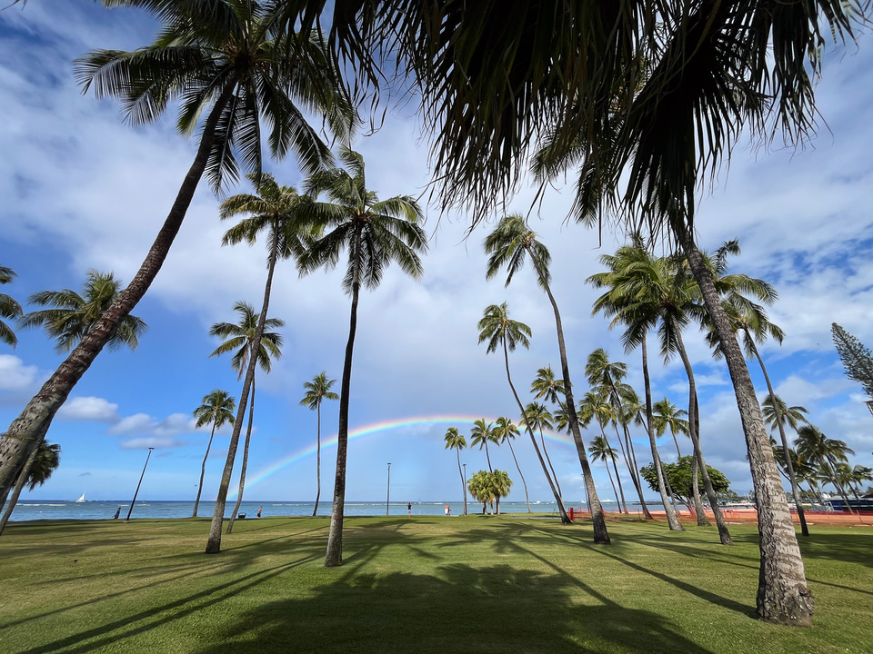 サッと降り注ぐ「シャワー」と呼ばれる雨のあとには虹が現われるハワイ。ほとんどがダブルレインボーなのでよ~く見てみよう。
