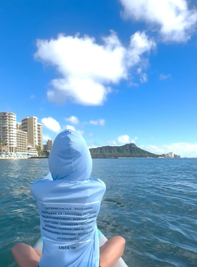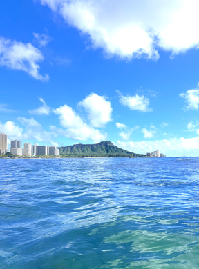 今年の元日だけは本当によく晴れた。初日の出を拝んだあとに一旦帰宅。サッとお雑煮を食べて、再びビーチへ。SUP(スタンドアップパドル)で沖へ出ると大きなホヌ(アオウミガメ)がプカ~っと顔を出して息継ぎをし、パドルボードの下を潜って「じゃあね」と言うように海底に消えていった。「海亀は波に乗って幸せを運んで来る」と言われるが、出会えた瞬間に十分幸せな気持ちに。ワイキキでSUPをしていると、ほぼ100%の確率で彼らに遭遇する。