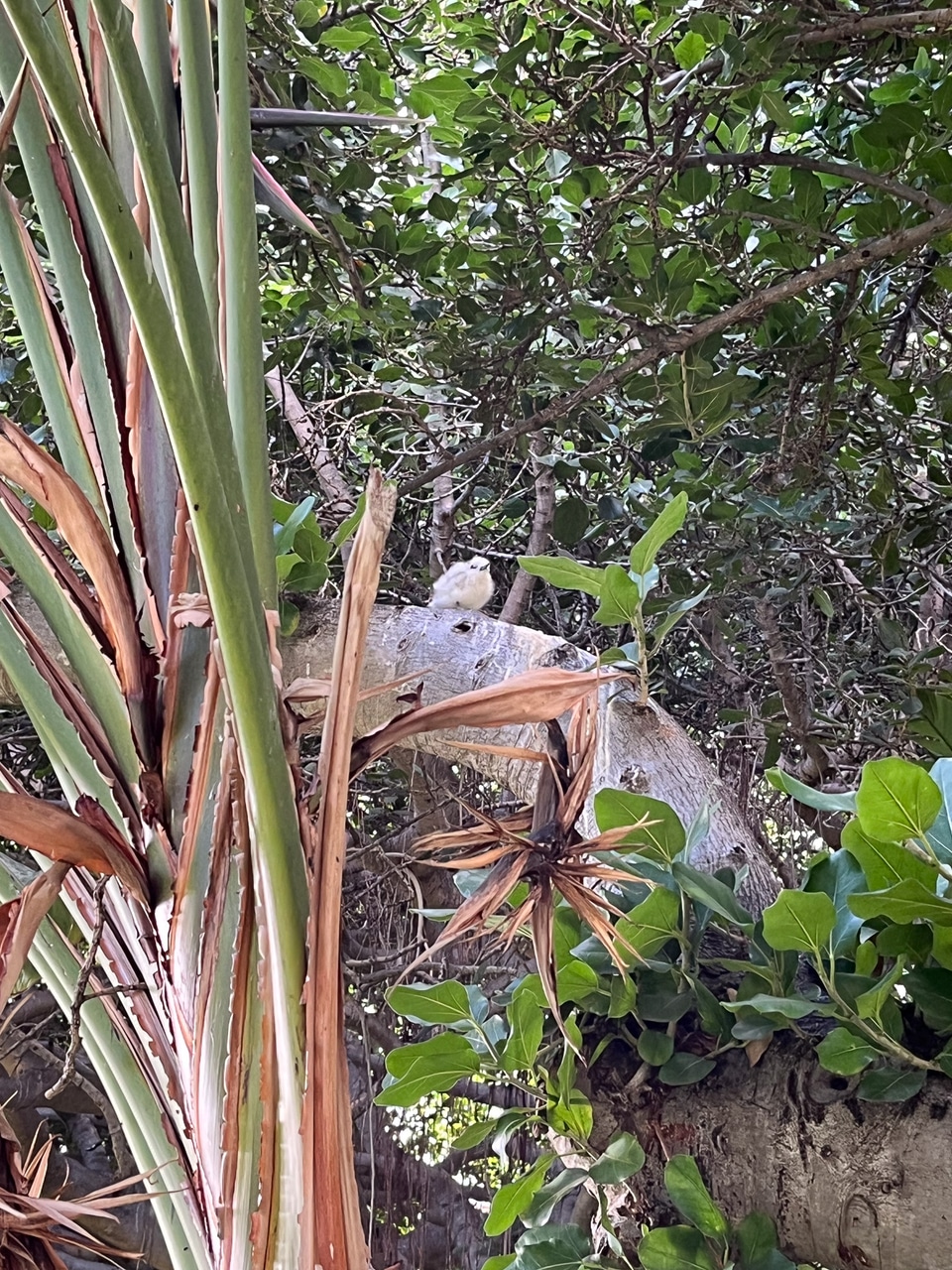 オアフ島のホノルルを中心に生息する真っ白な鳥、マヌオクー(シロアジサシ)。巣を作らずに、バニアンツリーやモンキーポッドの枝に直接卵を産むというめずらしい習性を持っている。2月ごろから秋にかけて産卵期らしいが、1年中ヒナを枝の上で見かける。ふわふわした丸い姿で親が魚をくわえてやってくるのをじーっと待っている様子をこちらもずーっと見ている。