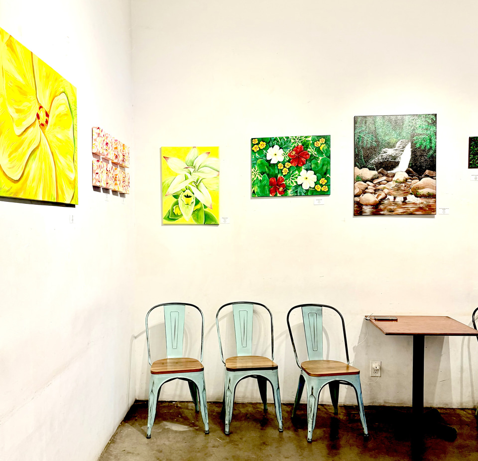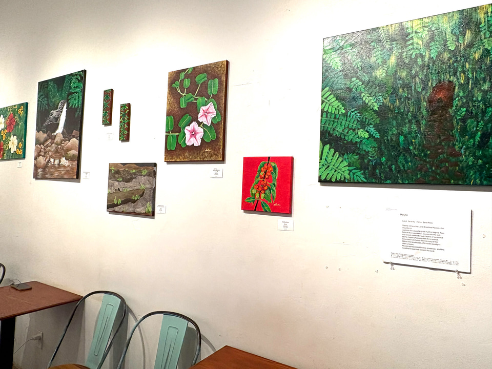 そんなサーシャさんが、3月から初の個展「Mālama 'Āina–島が呼吸する場所」を、モンサラット通りのARS Cafe(アースカフェ)で開催している。