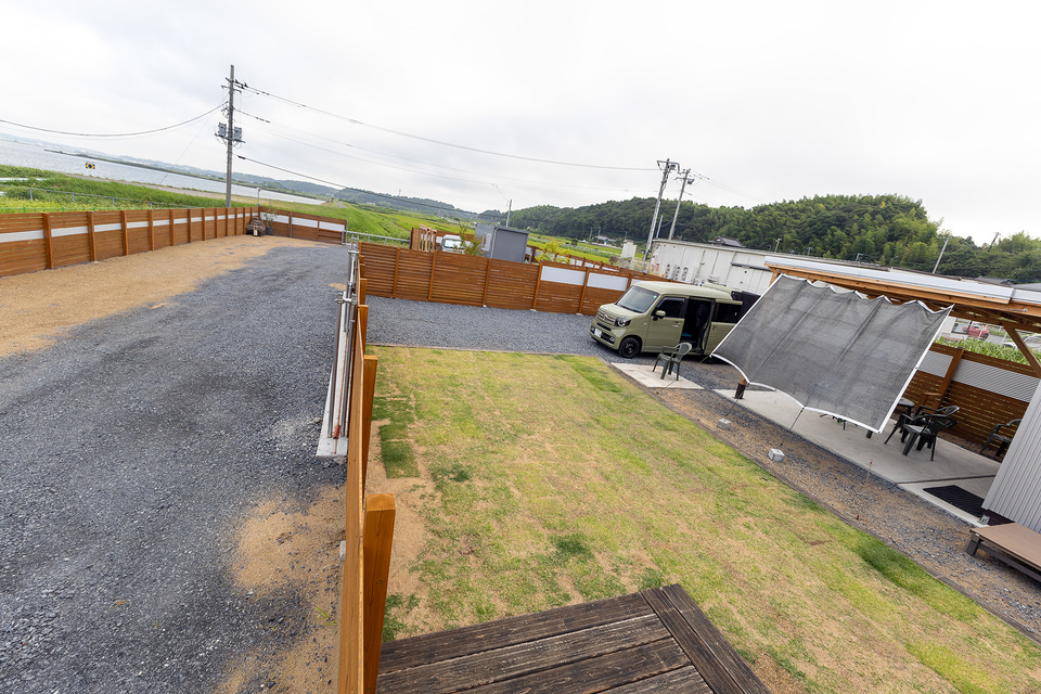 RVパークは車中泊のために誕生したものではあるが、北浦レイクサイドRVパークはもっと気軽に、例えばレンタカーのクルマ旅でも訪れてほしいと考えているので、サイト内にテントを張れる芝生スペースも用意している。そのため、実際にレンタカーや普通のクルマにテントを積んで来る利用者も多いという。