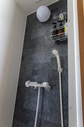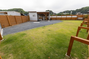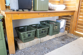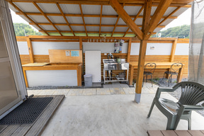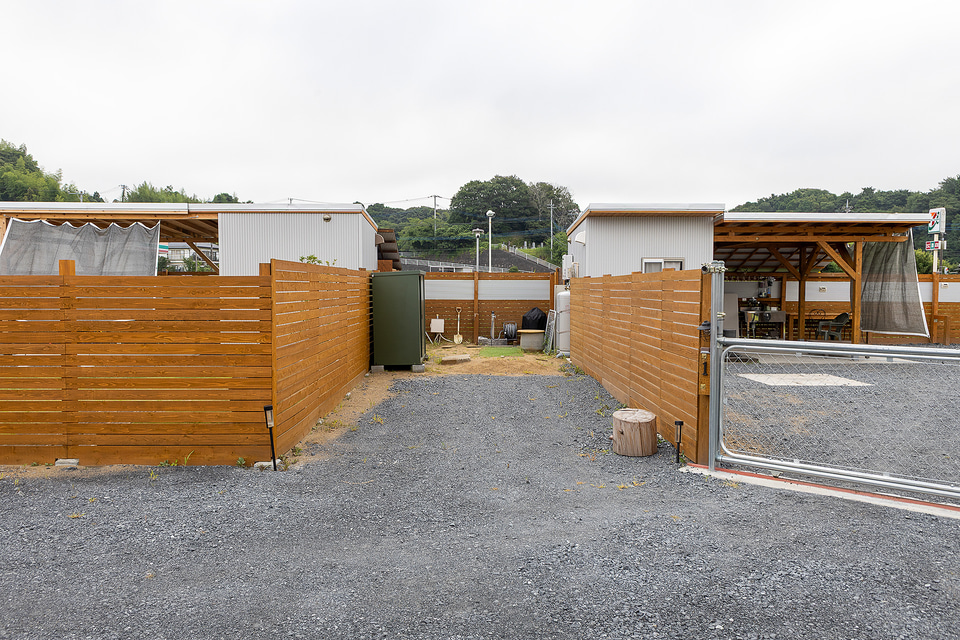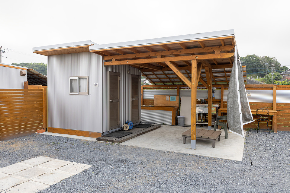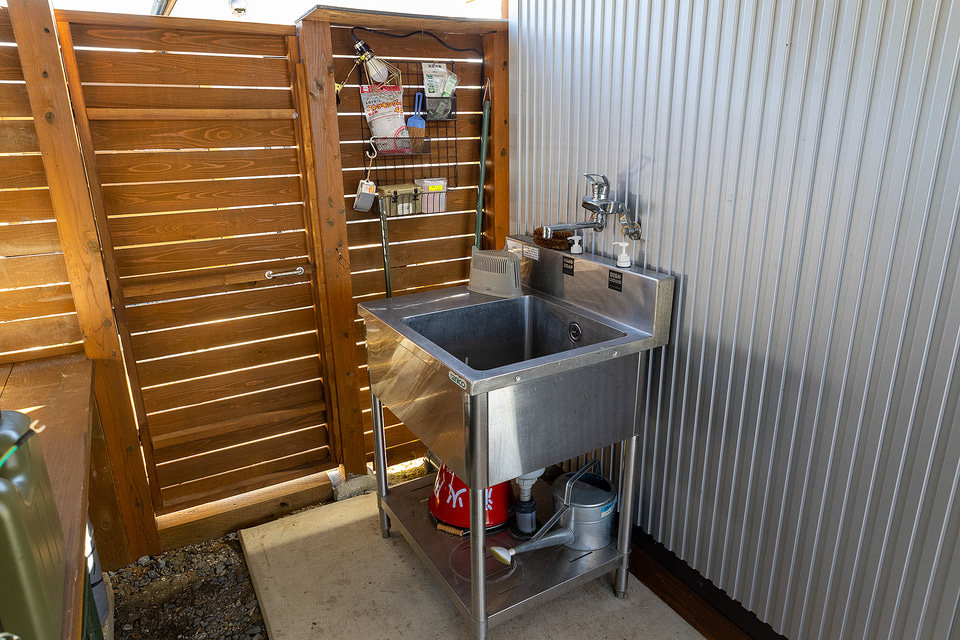 さらに特筆すべきポイントとして、サイトごとにトイレとシャワールーム、炊事場を備えており、食事できる屋根付きスペースも用意している。しかもすべて清掃が行き届いているので、どこを見てもキレイ。これは脱け毛などが残らないようにするというアレルギー対策のためではあるが、アウトドア施設でありながら清潔というのは非常に好感を持てるものだった。