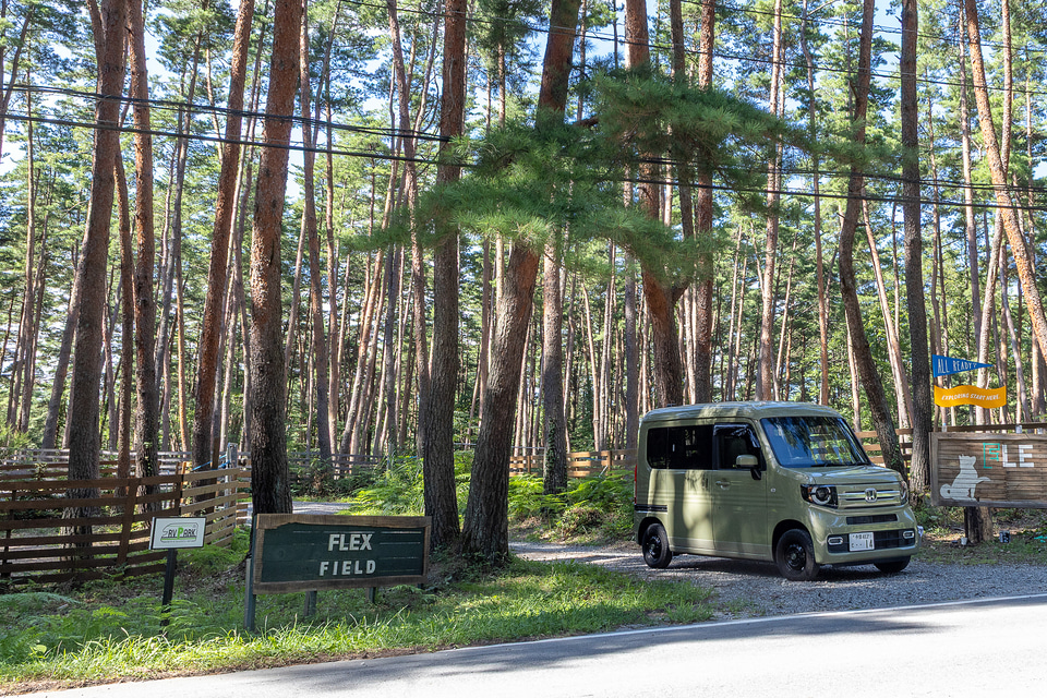 さて、今回は秋に行ってみたいRVパークを訪問してきた。山梨県北杜市の「RVパーク フレックスフィールド」(山梨県北杜市小淵沢町3900-2)だ。キャンプ場の「FOLKWOOD VILLAGE八ヶ岳」内にある施設で、運営はハイエースやランドクルーザーの販売などを行なっている「FLEX(フレックス)」によるもの。