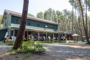 運営母体は都内で飲食店の経営を行なっているので、FOLKWOOD VILLAGE八ヶ岳でも食事にはこだわりを持っているとのこと。センターハウス内にあるカフェでは地元の食材を使ったメニューをいろいろと揃えていて、調理も建物内のキッチンで行なう本格派。店内テーブルのほかにテラス席があり、自分のサイトで食べたいという要望に向けてテイクアウトにも対応する。