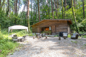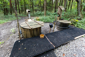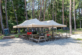 居心地については、周辺の環境からしてやはり気持ちがいい。取材した日はまだまだ夏日で日差しも強かったが、背の高い木に囲まれているため、日中でも適度に影ができるのもよかった。サイトの地面はウッドチップ引きで水はけがよいため、雨の日でも足元がぐちゃぐちゃになって困るようなことはないだろう。また、サイト内の手入れも行き届いていて、端の方はともかく使用するエリアには雑草など生えていない。