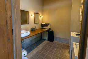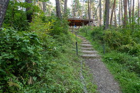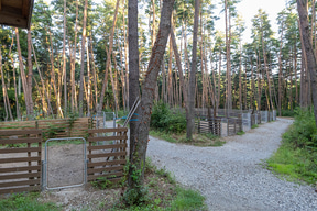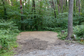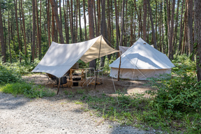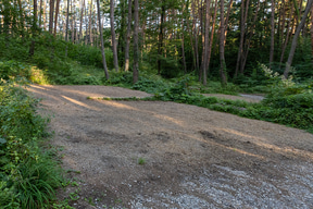 下段エリアは谷のような地形なので「森」という感じが強く、上段エリアより隠れ家的な雰囲気がある。また、下段エリアは1つのサイトのなかでも高低差があり(といっても激しくはない)、クルマを停める場所から1段高い位置にテーブルの展開やテントを張るスペースがあるサイトがある。これはこれでおもしろい使い方ができそうだが、クルマの種類によっては利用しにくさを感じることもあるかもしれないので、予約時に自分のクルマや装備展開のスタイルに向いているかどうか、施設に聞いてみるといいだろう。
