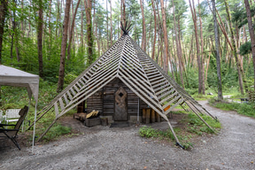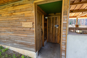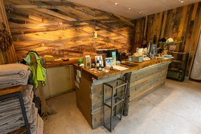 まずは受付でも利用するセンターハウス。ここではキャンプ用品やオリジナルグッズの販売も行なう。センターハウスのデザインは山小屋風で雰囲気がよく、施設のこだわりの強さが伝わってくるが、こだわっているのは建物だけではなかった。