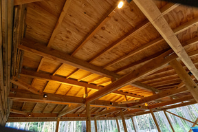 ストーブに乗った石に水をかけて蒸気を発生させるロウリュに対応したフィンランド式で、室内は中心に置かれたストーブを囲うようにデッキのある独特なもの。階段状になっているため、上の段と下の段で温度差が生まれ、体調に合わせた利用ができるという。