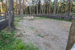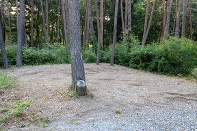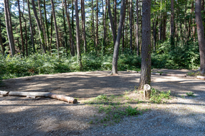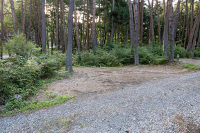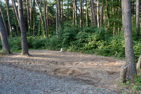 フレックスフィールドは赤松の森を開拓して作ったキャンプ場内にあるので、サイトの作りはキャンプ場と同じようなもの。サイトごとに地形はまちまちだ。