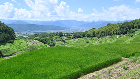 棚田の風景は季節ごとに違った表情を見せてくれる。そして美ヶ原から北アルプスまでの眺望もあり、眺めているだけで心休まる場所だ。近くに行く機会があれば立ち寄ってみてはいかがだろうか。
