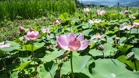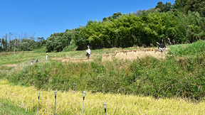 写真は夏の緑の映える時期と2024年9月の収穫時期のもの。米不足や天候による不良など言われているが、ここは水も豊富のようで大丈夫そうだ。