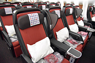モニターはタッチパネル式の12.1インチで周辺にはUSBポートなどを完備しているので、スマートフォンなどの充電も飛行中にできます。また、センターディバイダでプライバシーを守れる安心仕様と至れりつくせり。
