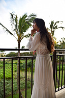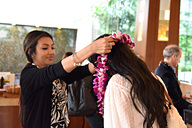 Fukiさんも「HANALEI TARO&JUICE CO.」でプレゼントされたハクレイを身に着けて桟橋をお散歩。挙式などでも使われるレイなため「ウェディング?」などと声をかけられるほのぼのとした瞬間もありました。