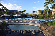 オープンエアのロビーからはラグーンプールとともに海を眺めることができ、訪れた瞬間から開放的な気分に。プールやラナイでゆったりできるなど日常を離れて静かな時間が過ごせます。プールサイドにはハワイを代表するシェフのサム・チョイ氏とのコラボレーションレストラン「HOLOHOLO GRILL」も。ハワイアン・コンフォート・フードと呼ばれる島で取れた新鮮な食材を使った、ここだけのメニューをたっぷりと味わうことができます。