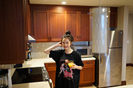 ぐっすり眠り、気持ちよく目覚めた朝にぴったりの体にうれしいフルーツづくしの朝食に、Fukiさんもスマイル。