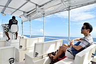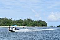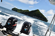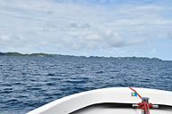 ツアー専用ボートに乗船し、ペリリュー島に向けて出発です。見渡す限りの水平線に、次から次へと美しい島々が現われます。パラオには586もの島々がありますが、人が住んでいるのはわずか9島のみ。