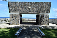 スカーレットビーチには、日本の厚生労働省が1985年に建てた西太平洋慰霊碑があります。正面のエンブレムは「半眼」、半眼が見つめる先は真北=日本。もこもこ雲のデザインは、雲に乗って御霊が日本に帰れるようにという願いが込められています。