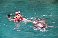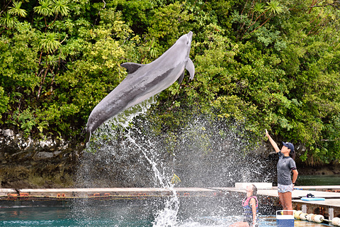 「一日体験コース」では、自らプールに入ってイルカの背びれにつかまって一緒に泳ぐこともできます。インストラクターが手取り足取り教えてくれるので初心者でも安心。イルカと一緒に泳ぐ機会はなかなかないので、パラオを訪れたらぜひチャレンジしたいスポットですね。