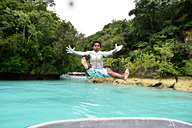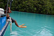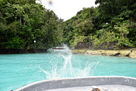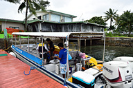 ミルキーウェイは人気急上昇中のスポットなので、朝一番に出かけるのが吉。ガイドのアンディさん(こと安藤さん)、船長のオリールさんとともにボートで出発!