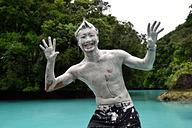 ミルキーウェイを訪れた人だけの特権、海底から泥をすくい、全身に塗って、思い思いに写真を撮って(笑)。