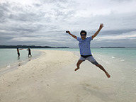 続いてはミルキーウェイから船で15分、干潮時にだけ顔を出す真っ白な島「ロングビーチ」に到着です。この日は潮と時間のタイミングがピッタリで、透き通った海に白いロングビーチが出現!