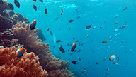 この海域は潮の満ち引きによって珊瑚の島が海面に顔を出すことがあるため、船長は潮や天候を見ながら随時ルートを変えて走行していました。
