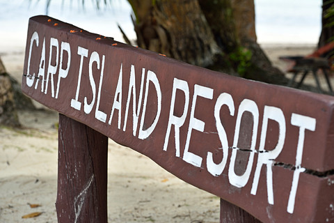 泥パックではしゃいで、ロングビーチを走り回り、水族館じゃなくて海中を覗き、ちょっとお腹がすいてきたかなーというタイミングで「カープ島」に到着です。