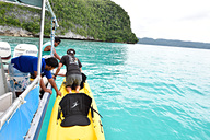 ボートからカヤックを降ろし、早速漕ぎ出します。