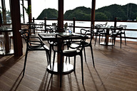 店内には素敵なバーカウンター、ガラスを多用したあふれる店内、海辺のオープン席、どこを撮っても絵になります。